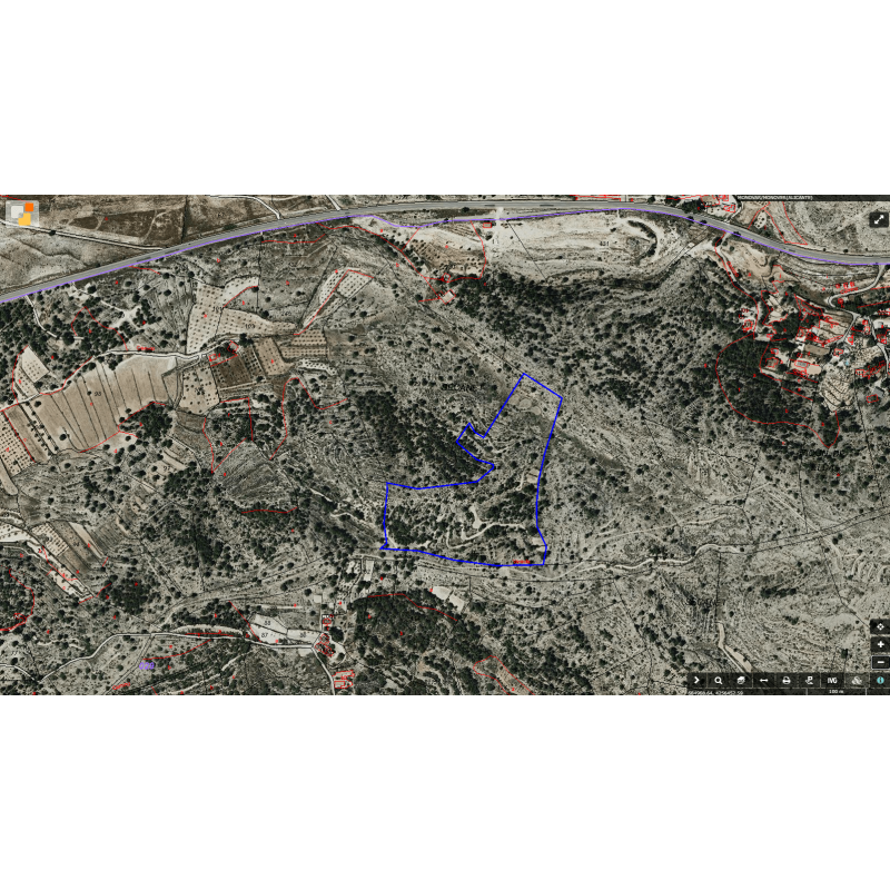 Se vende parcela de terreno rústico perteneciente al término municipal de Monovar, en la provincia de Alicante. La parcela se encuentra en la zona del Secanet partida Vellongas, en la carretera CV-83 dirección Pinoso. Se encuentra a pocos kilómetros de la población de Monovar que dispone de todo tipo de servicios. Dispone de 70.416 m2 para su libre construcción de una obra nueva. Se podría dividir en 3 parcelas de 23.472m2 cada una.